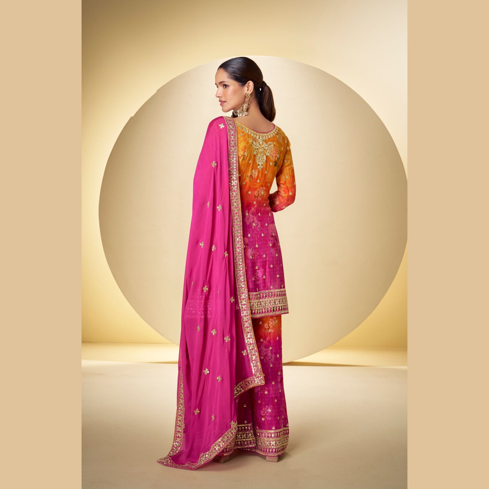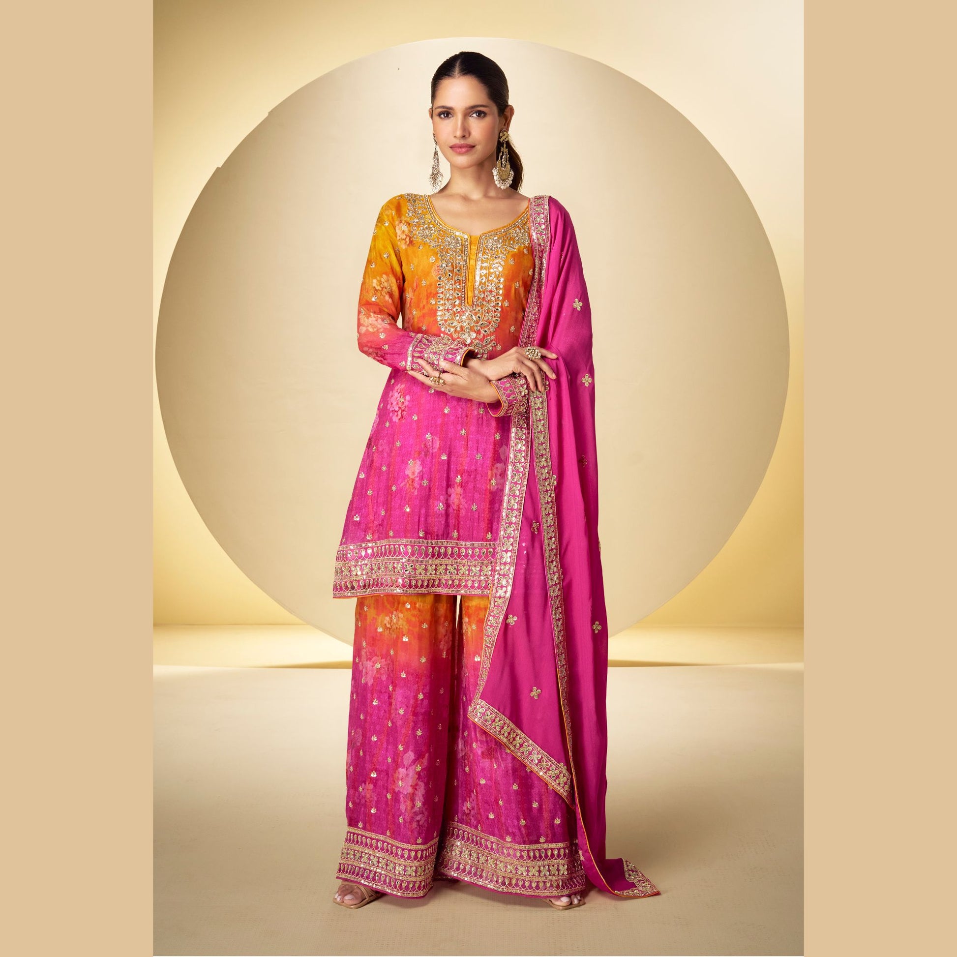 Fuchsia Flame Embroidered Sharara Set with Dupatta
