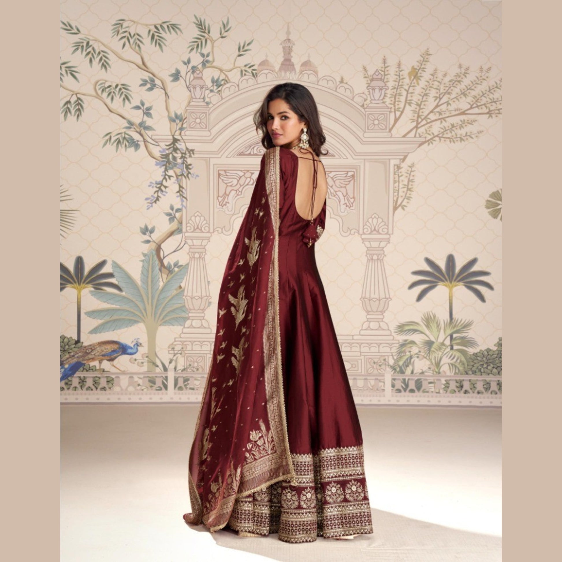 Gown Premium Silk / Viscose Jacquard Silk Front and Back Embroidery Trendy Festive Look