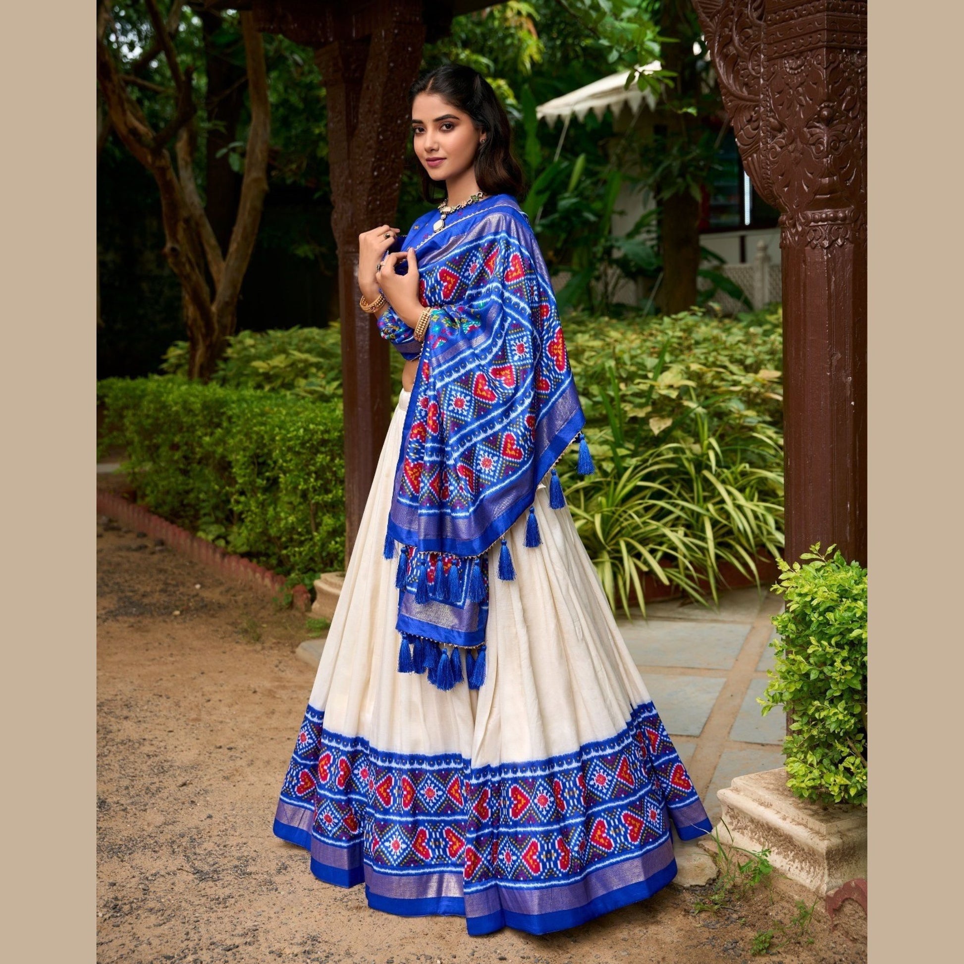 Lehenga Tussar Silk Patola Print Waist: Supported up to 42