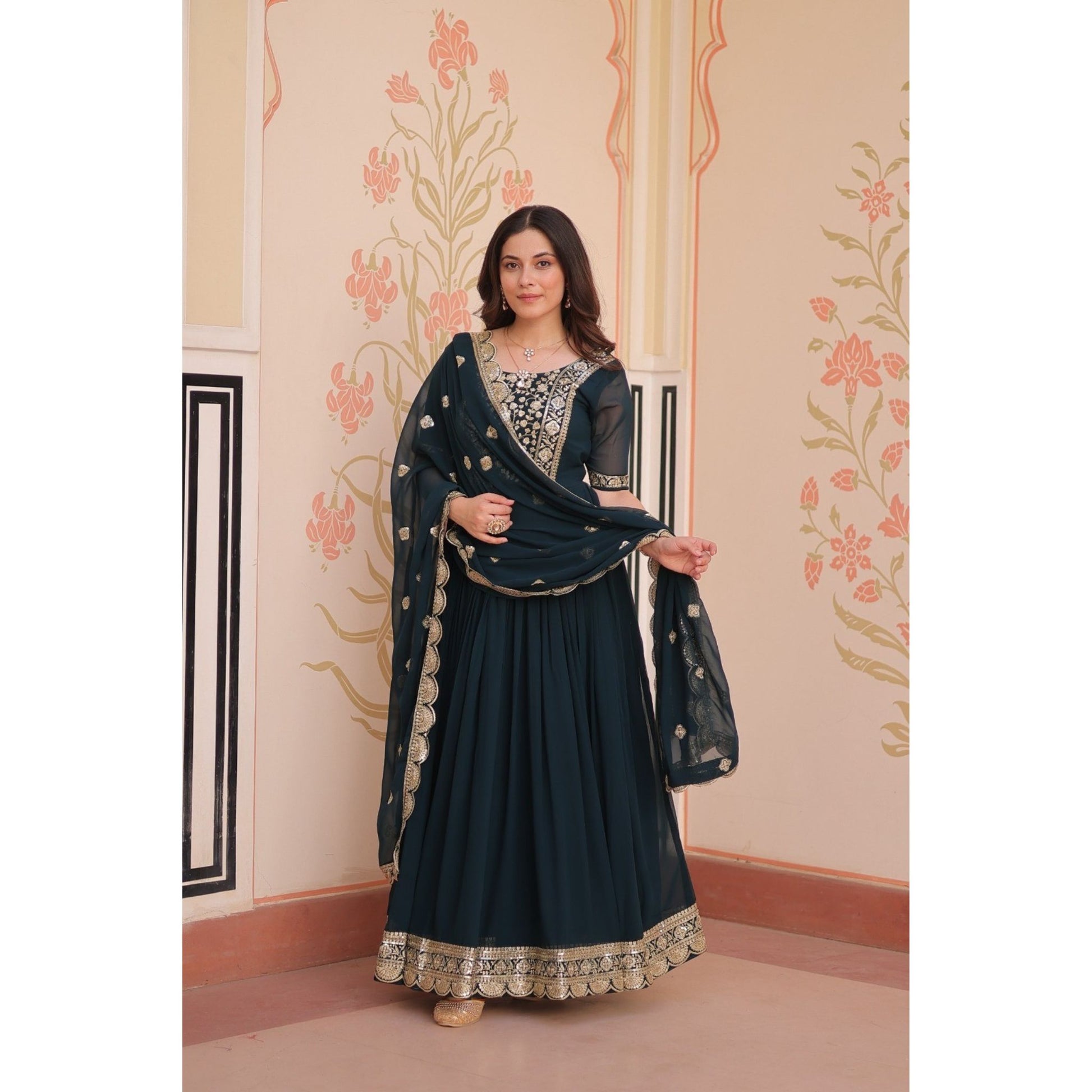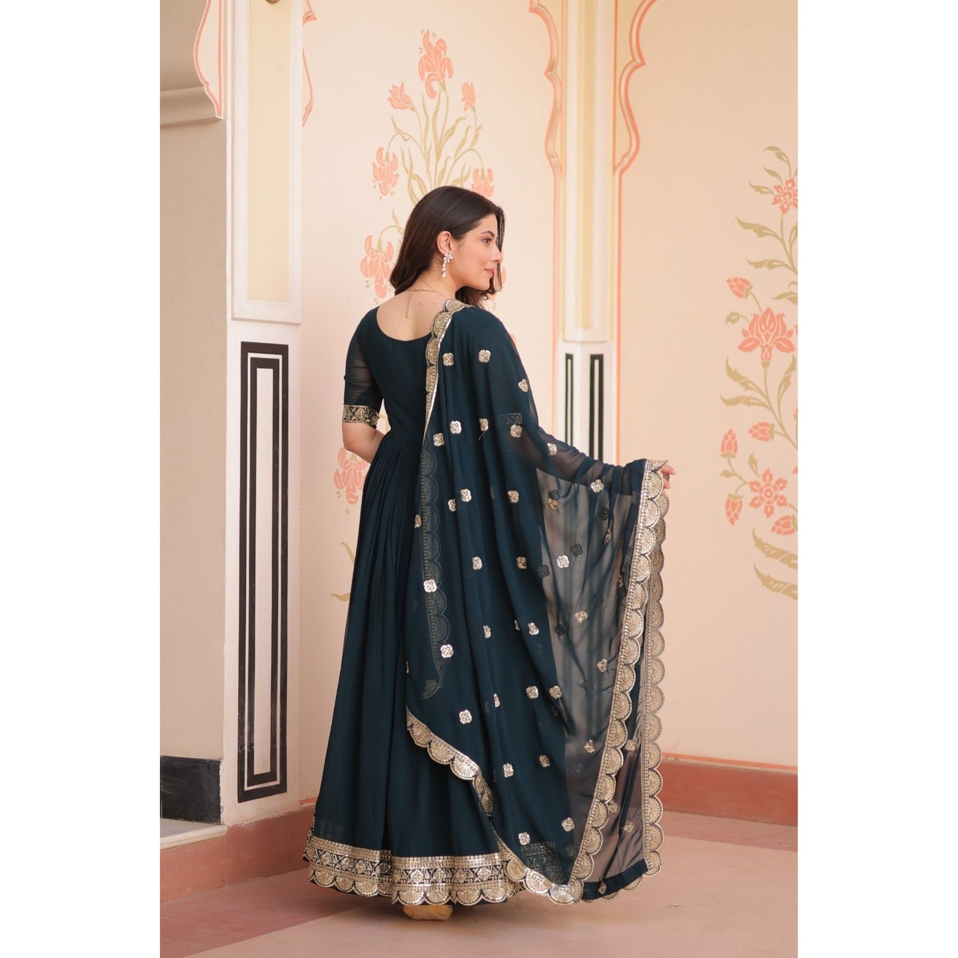 Gown Georgette Blooming Embroidery Zari Sequins Work Flair: 3 Mtr