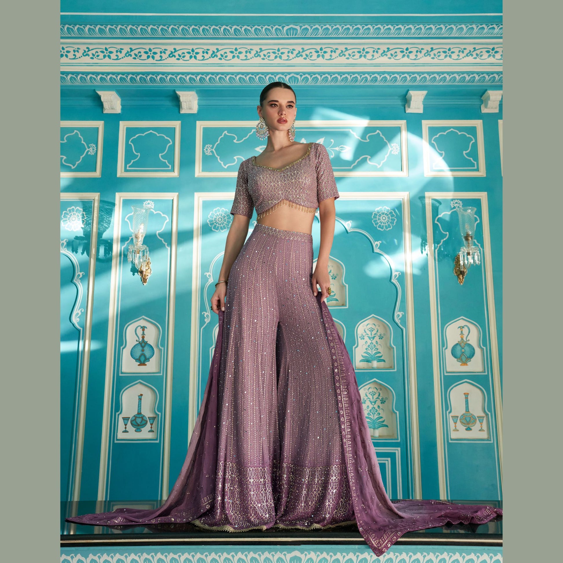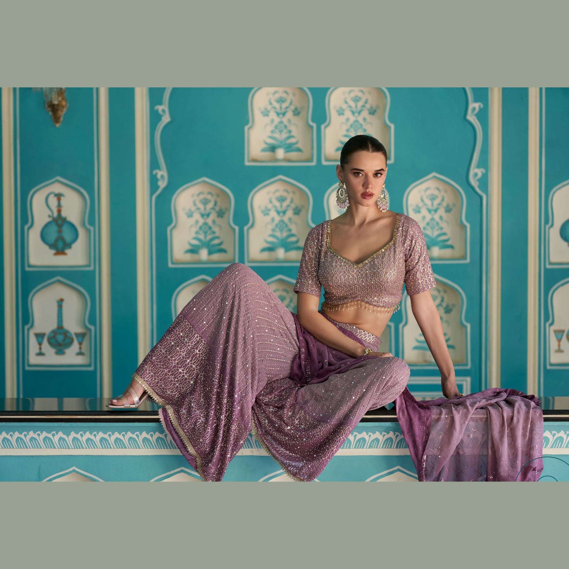 Plazzo Real Premium Georgette Embroidered Seroski Zarkan Mirror Work Designer Heavy Plazzo