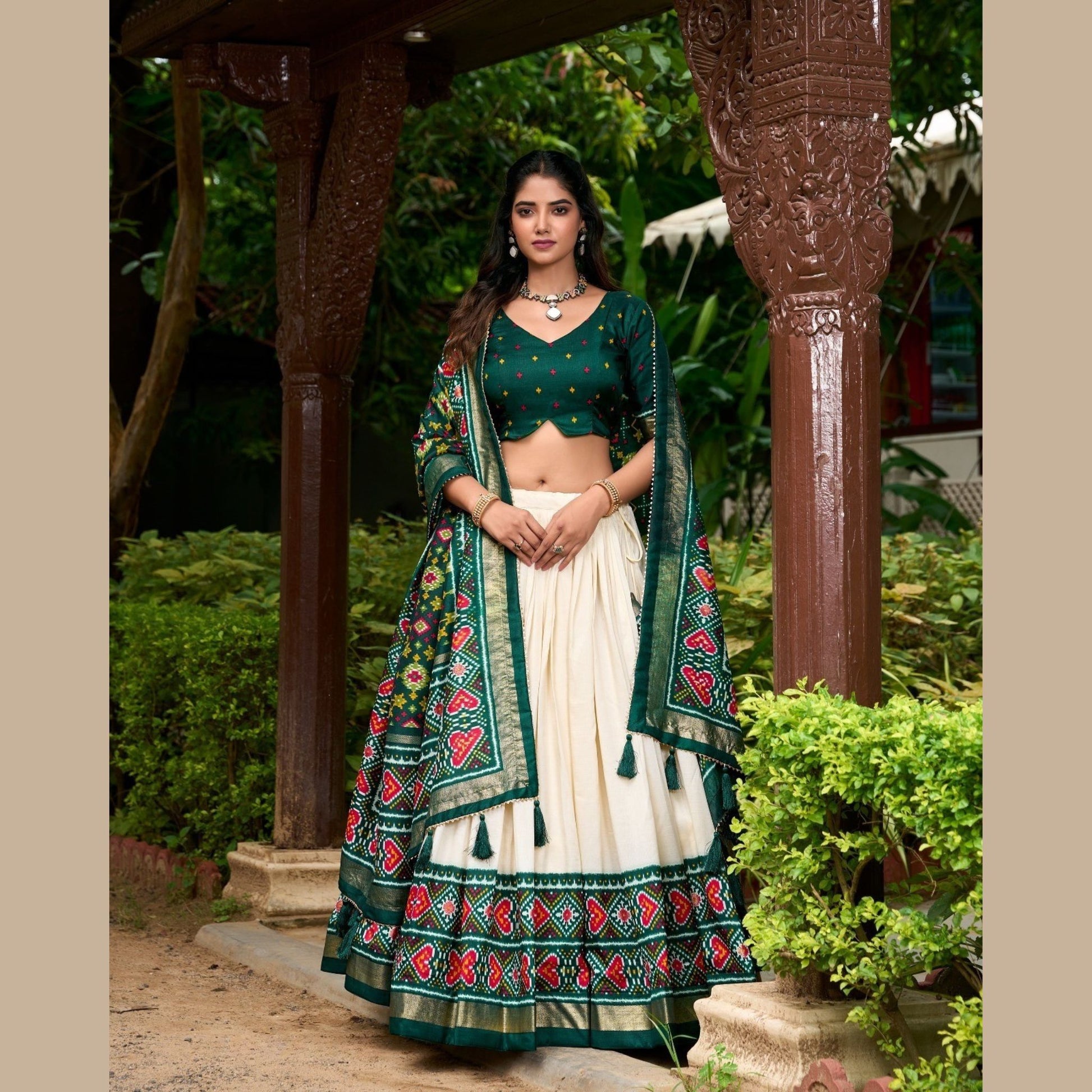 Lehenga Tussar Silk Patola Print Waist: Supported up to 42
