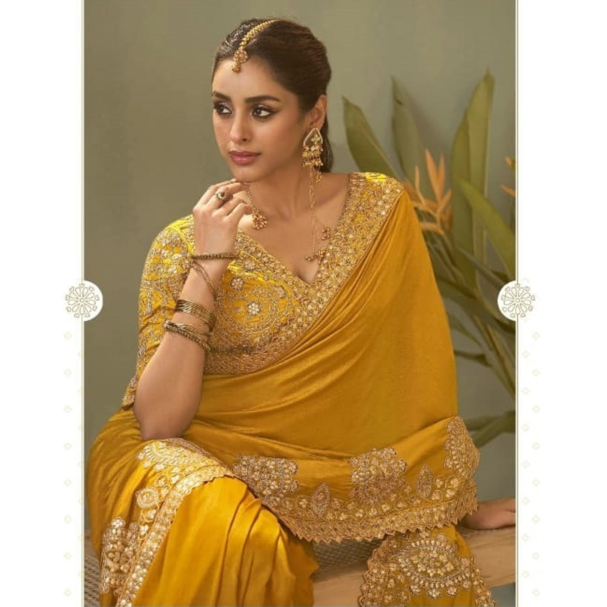 Saanvi Gold Regal Embroidered Saree