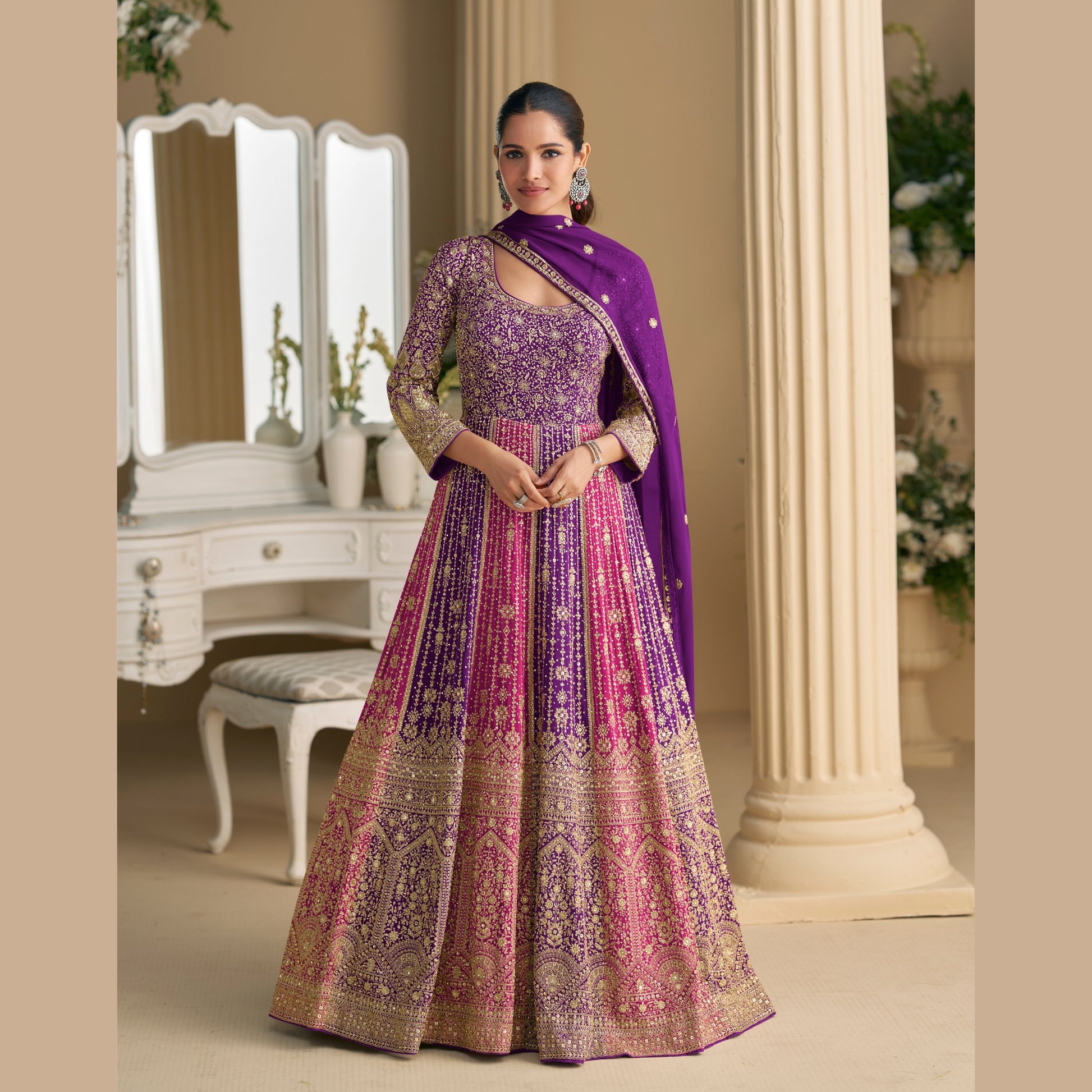 Gown Real Premium Georgette Full Heavy Embroidery with Seroski Zarkan Size: XL, XXL